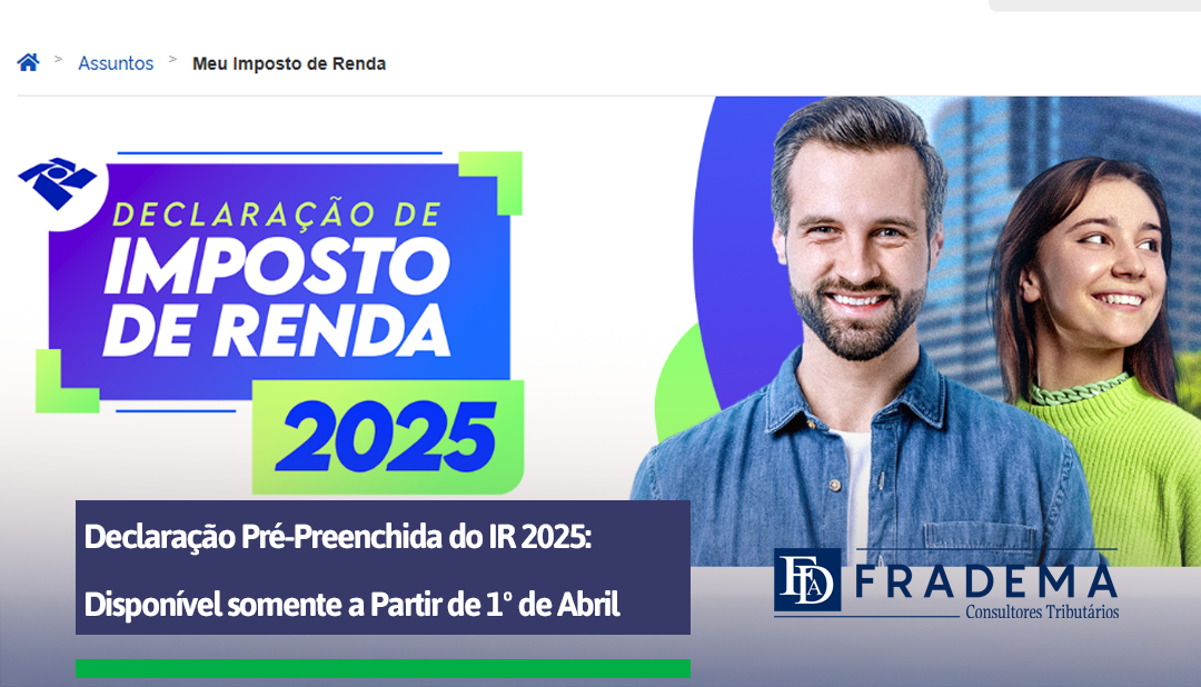 A Receita Federal iniciou hoje o período de entrega da Declaração do Imposto de Renda 2025, com término em 30 de maio. Neste ano, a declaração pré-preenchida estará disponível a